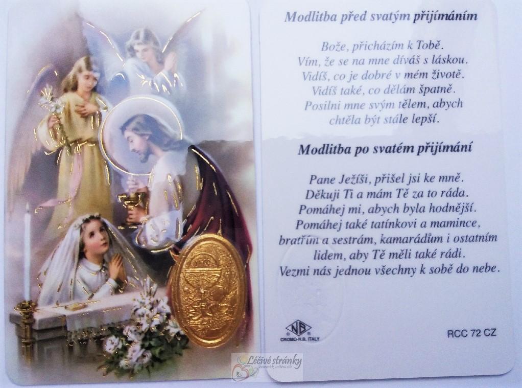 - Oboustranný, na druhé straně je modlitba před a po svatém přijímání.