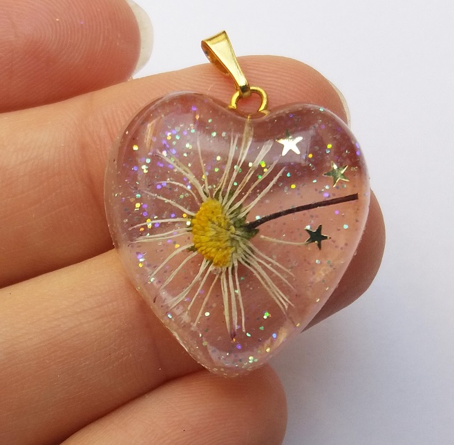 - přírodní pryskřice, sušené květy - sedmikráska, ozdoby, třpytky, bižuterní závěs.
