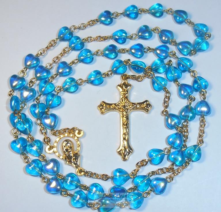 - Růženec skleněný - tyrkysová metalická barva na zlatě