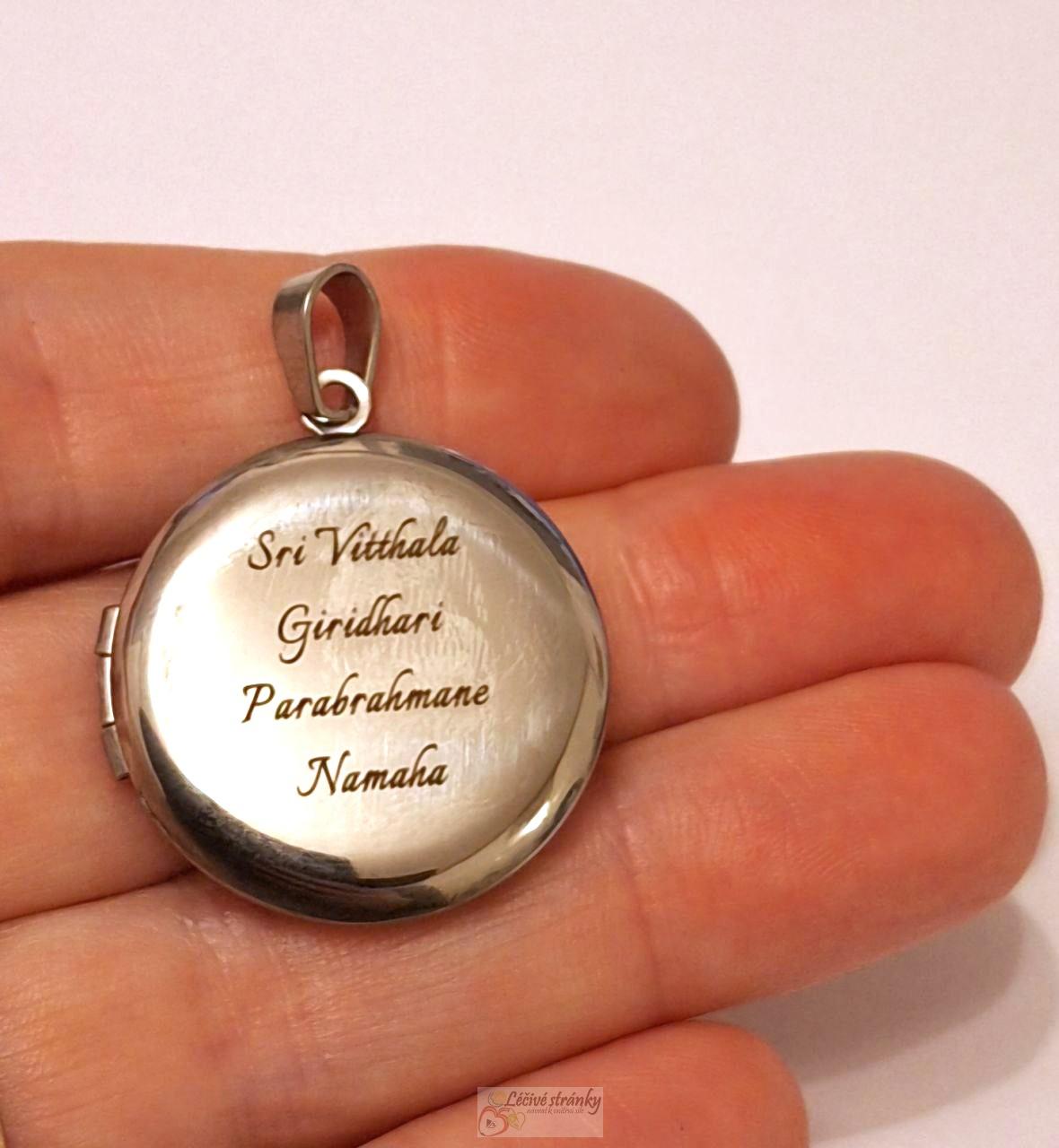Otevírací medilon s gravírovanou rytinou s mantrou: