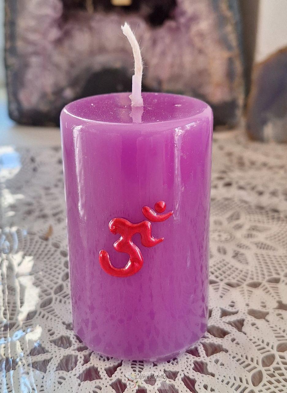 Svíce válec, fialová ÓM - 8 x 5,1 cm